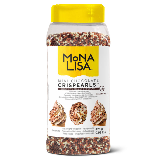 Premium Ingredients: Made with a blend of dark, milk, and white Callebaut chocolate, these mini crispearls surround a crispy toasted biscuit center for a balanced texture and flavor.