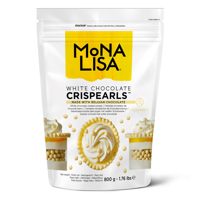 Premium Ingredients: Crafted with 84% Callebaut W2 white chocolate, these crispearls feature a creamy, caramelly coating enveloping a crispy toasted biscuit center, delivering a delightful texture and taste.