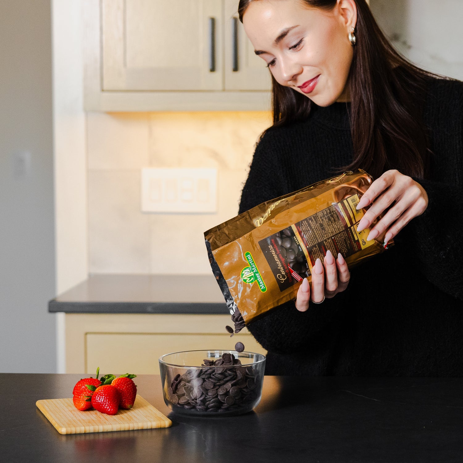 Balanced, indulgent chocolate flavor with a glossy, clean set that elevates both simple and high-end creations. -